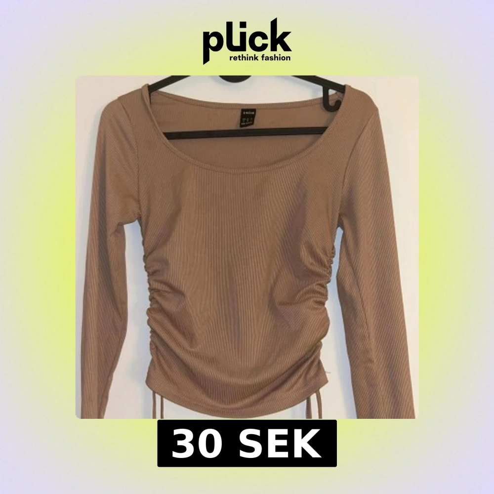Snygg beige ribbad topp från SHEIN med långa ärmar och rynkade detaljer på sidorna. Perfekt för en stilren look.