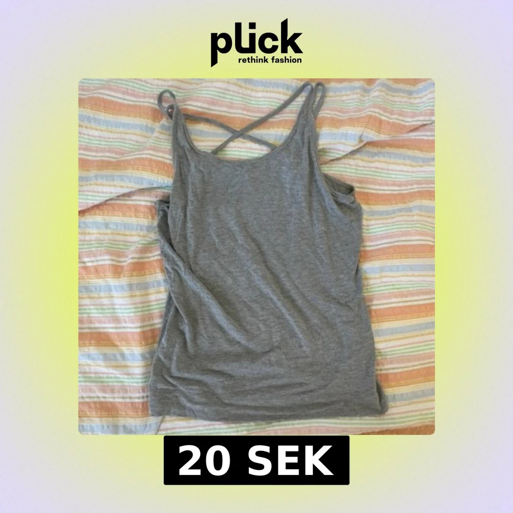 Säljer en enkel och stilren grå linnetopp med smala axelband som korsas i ryggen. Perfekt för varma dagar eller som lager under andra plagg. Mjuk och skön bomullsblandning.