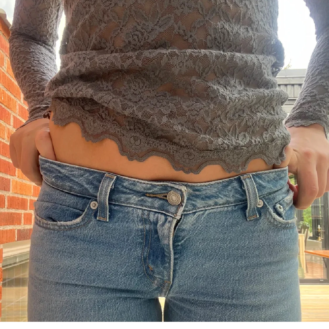 Snygg grå spetsblus från rosemunde med långärmad modell. Blusen har ett blommönster och en fin kantdetalj vid halsen.❤️ köpt på Sellpy för ett år sen❤️ jätte fint skick