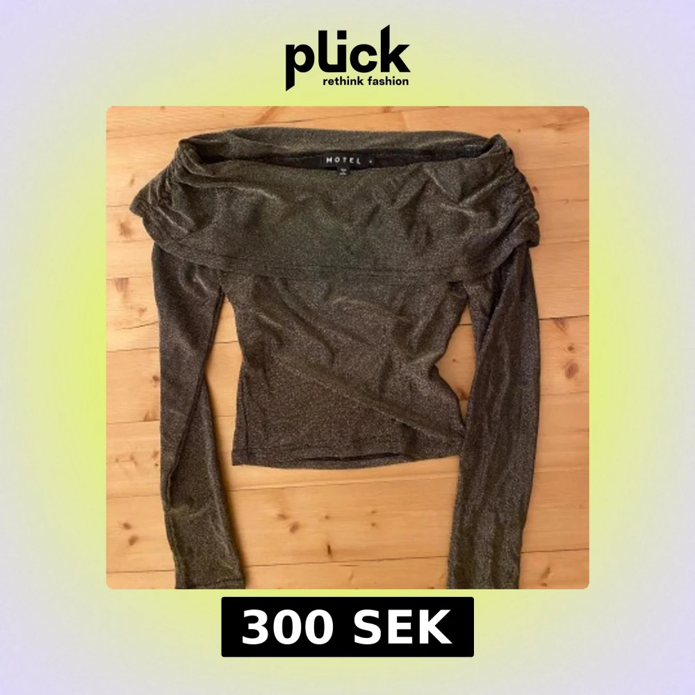Snygg glittrig offshoulder topp från Motel i en mörkgrön nyans. Nästan aldrig använd