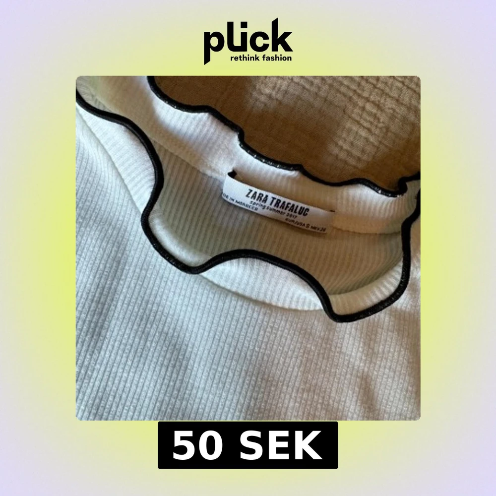 Säljer en vit topp från Zara med svarta vågiga kanter vid hals, ärmslut och nederkant.