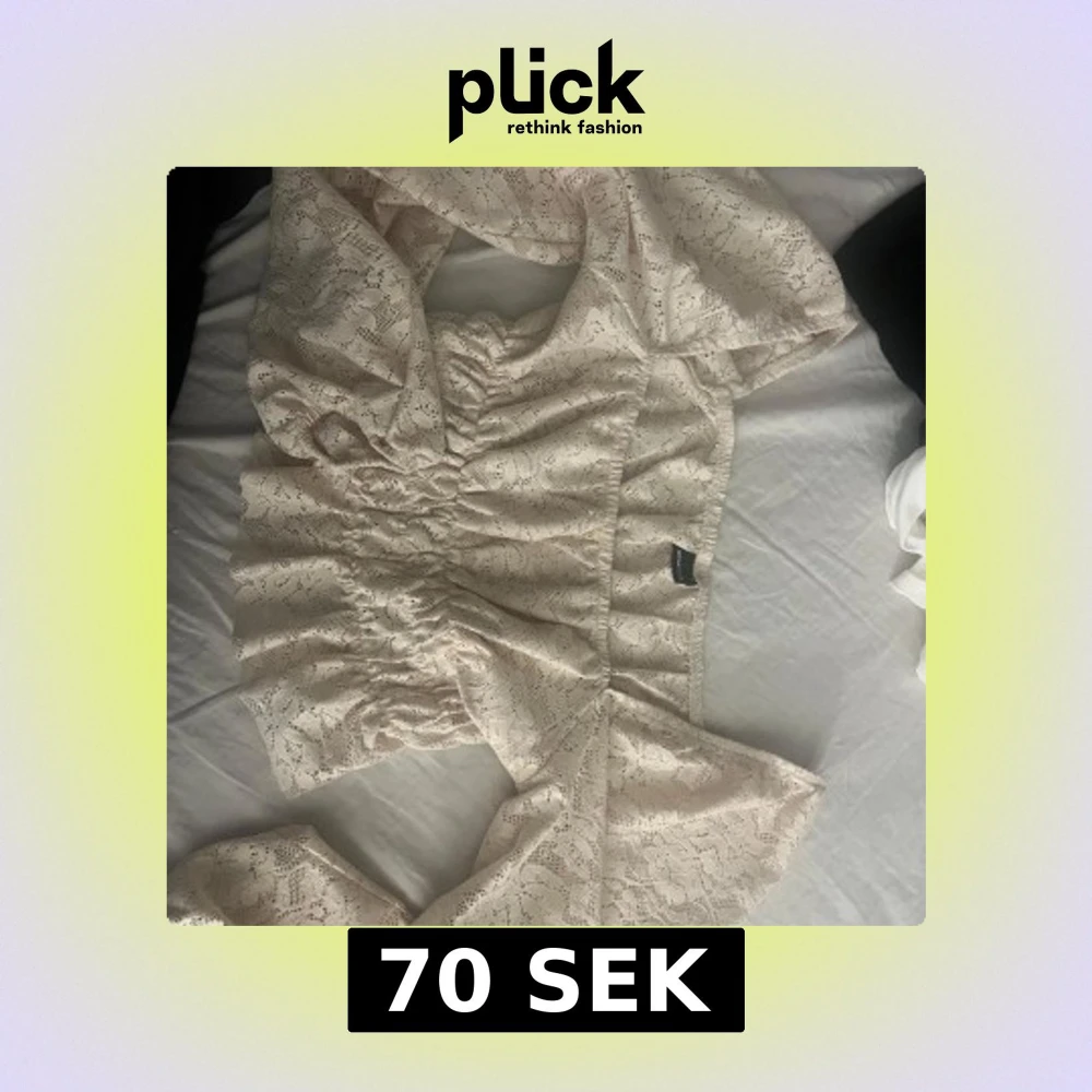 Säljer en romantisk beige spetsblus med elastisk midja och långa ärmar. Blusen har ett vackert spetsmönster och är perfekt för en elegant look. Passar bra till både jeans och kjol. Den är knappt använd.