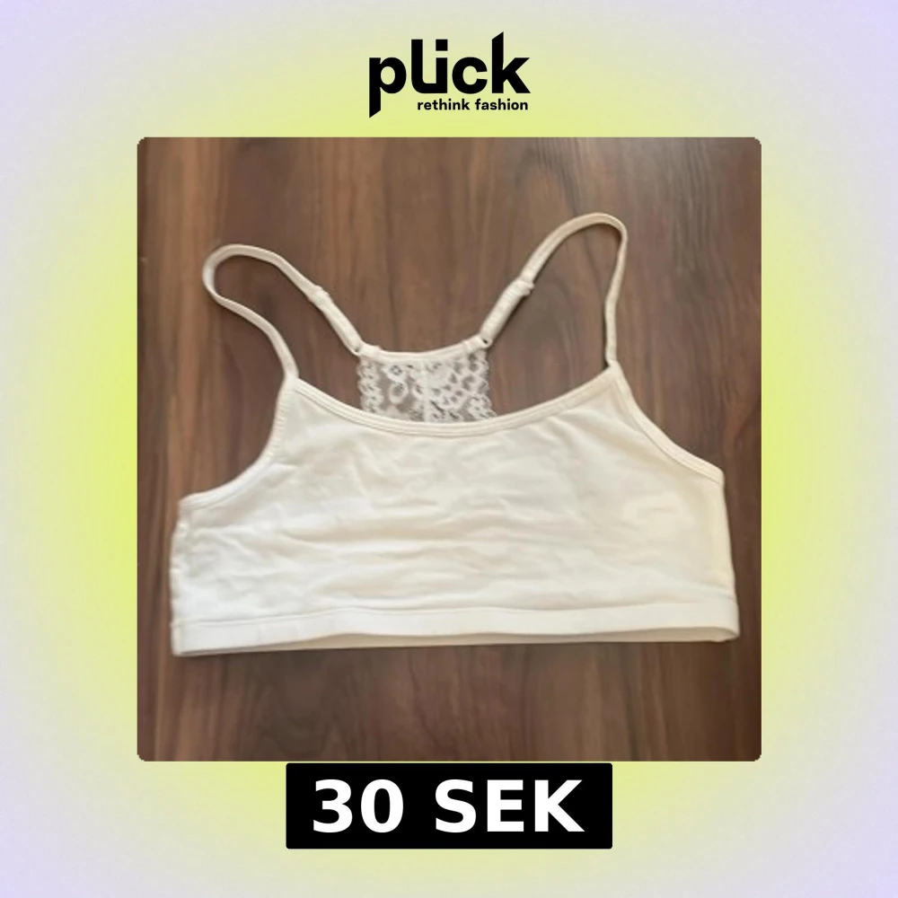 Säljer en vit topp/bh med spets. Den har ställbara axelband men ingen bh knäppning. Bh-n/toppen är i storlek S och är i mycket bra skick. Lapp med storlek och vilken affär den kommer ifrån är tyvärr bortklippt. Den kommer iallafall antingen från h&m, Lindex eller Kappahl.