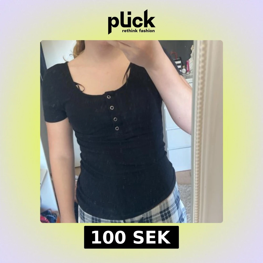 Säljer två svarta ribbad toppar från Pieces i storlek XS. Toppen har korta ärmar och dekorativa knappar framtill. Perfekt för en stilren look. Säljer både i ett köp