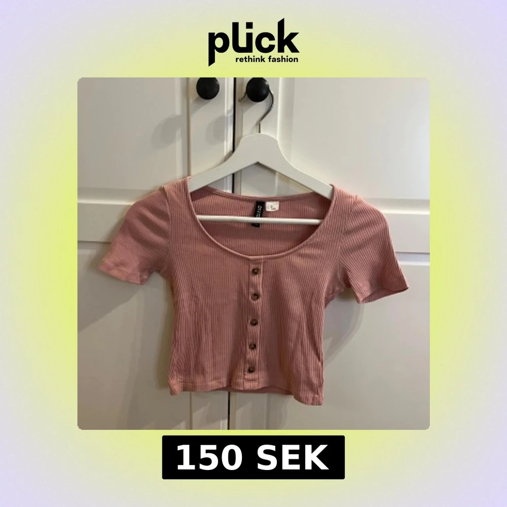 Säljer en söt rosa ribbad topp från H&M Divided. Toppen är croppad med korta ärmar och har knappar framtill. Perfekt för en avslappnad stil.