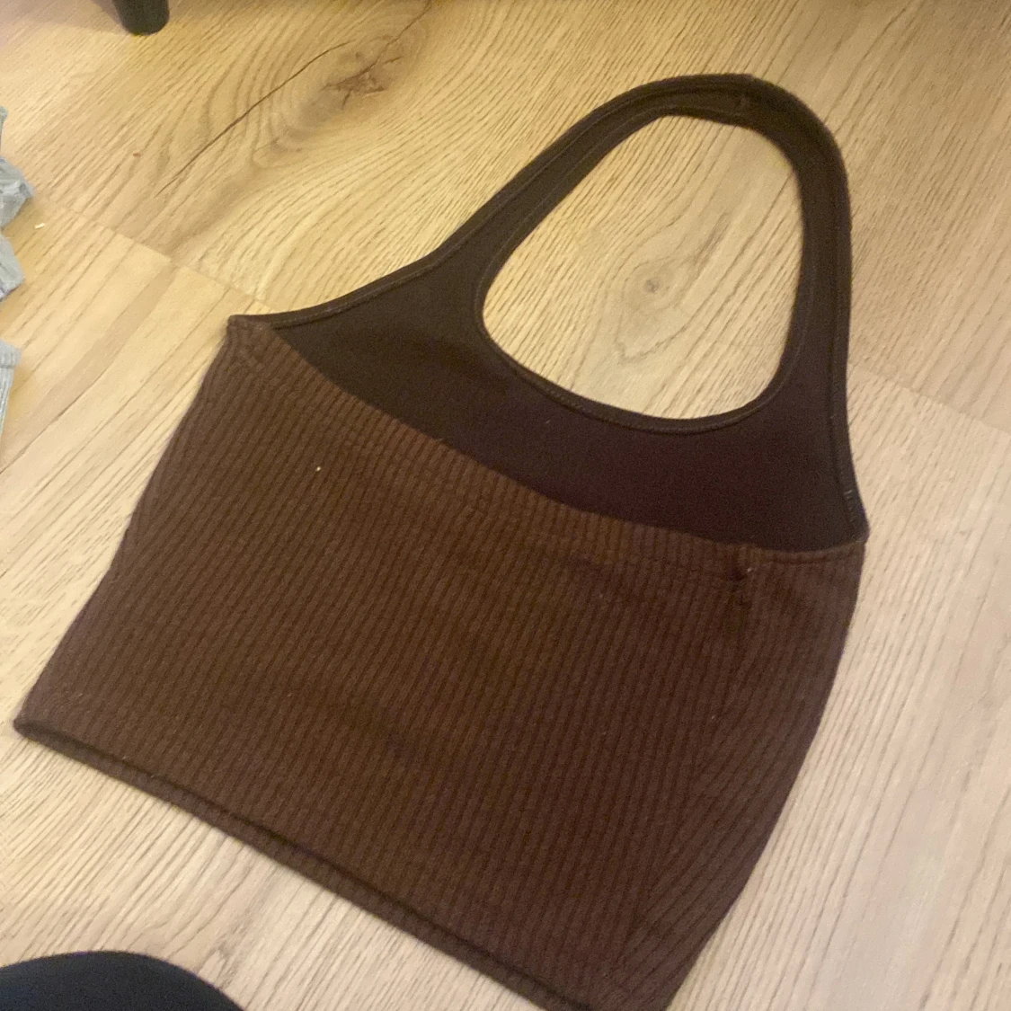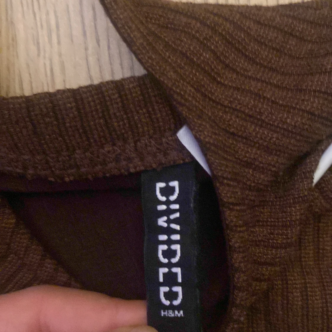 Säljer en brun ribbad linnetopp från H&M Divided. Toppen har en enkel och stilren design med breda axelband och är perfekt för en avslappnad look.