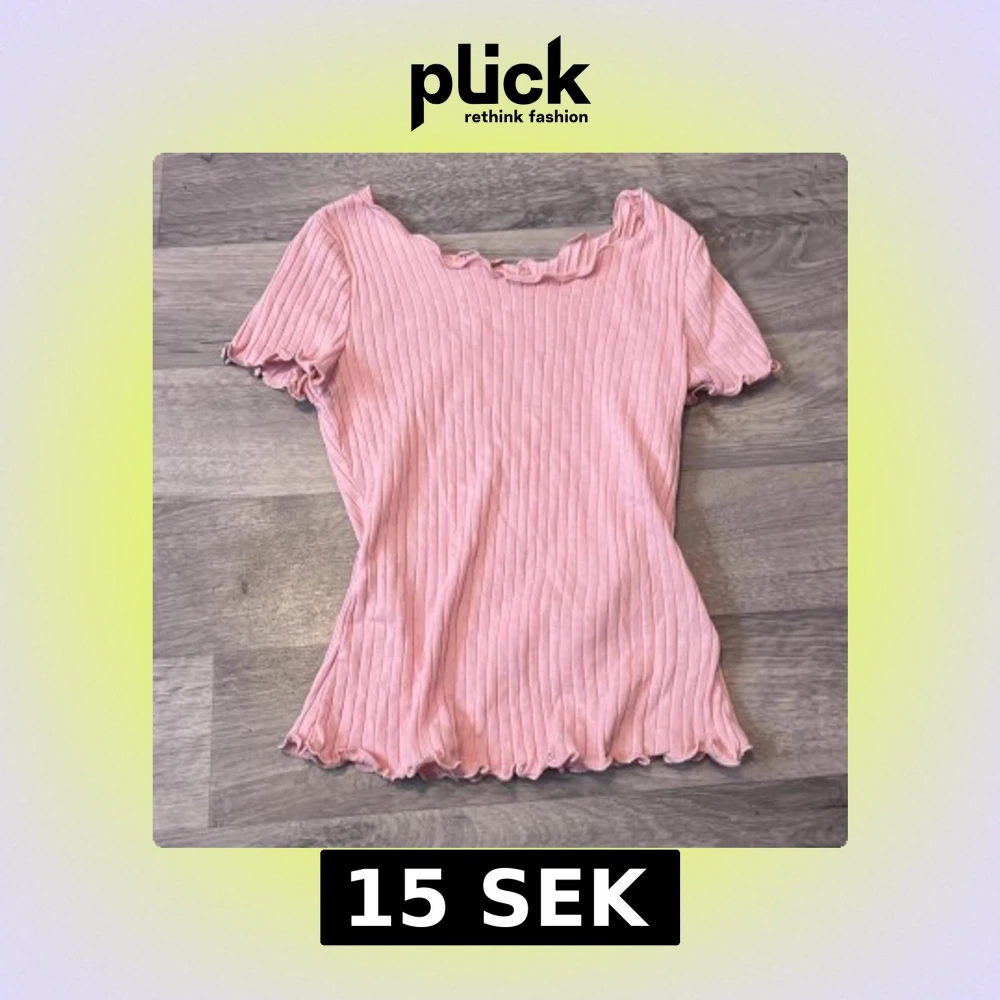 Säljer en ljusrosa ribbad topp från SHEIN med volangdetaljer vid halsringning, ärmslut och nederkant. Toppen har korta ärmar och är tillverkad i mjuk bomullsblandning. Perfekt för en söt och avslappnad look!