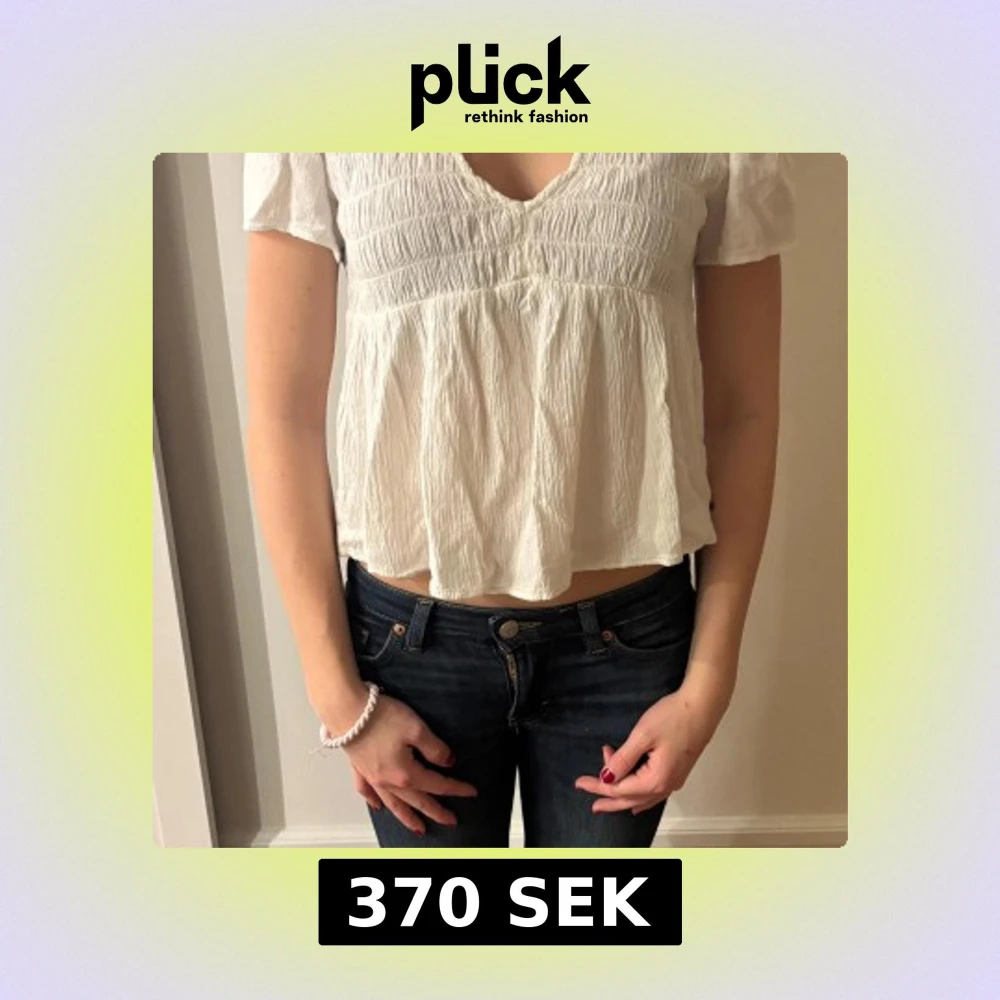 Säljer en söt vit blus från Brownie med korta ärmar och v-ringning. Blusen har en luftig passform och smockdetaljer upptill som ger en fin struktur. Perfekt för en avslappnad stil.