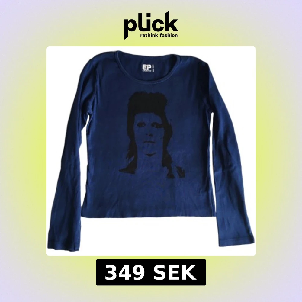 Mörkblå långärmad topp med svart David Bowie tryck! (Strecken över trycket är bara att tröjan varit vikt)