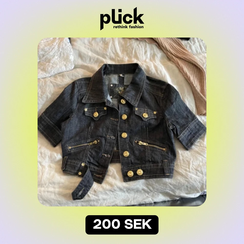 En blå jeans croptop. Jag ser inget märke men kolla gärna bilderna på lapparna själv. Storlek Small Skicka gärna meddelande vid frågor. Tack för titten!