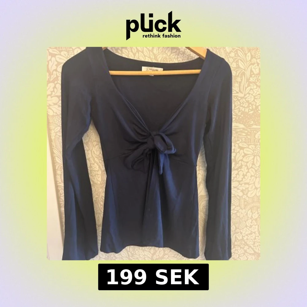 Säljer en mörkblå långärmad topp från Design by Si. Storlek XS/S. Använd ca 2 gng.