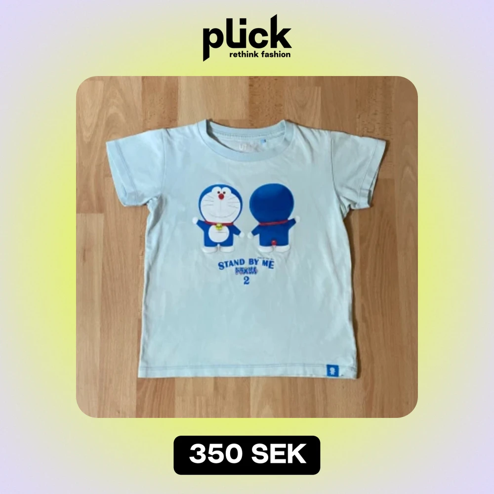 Ljusblå T-shirt med gulligt tryck, passar bra på s och xs