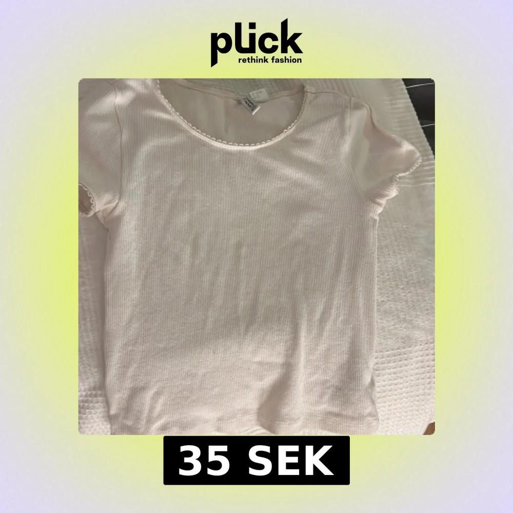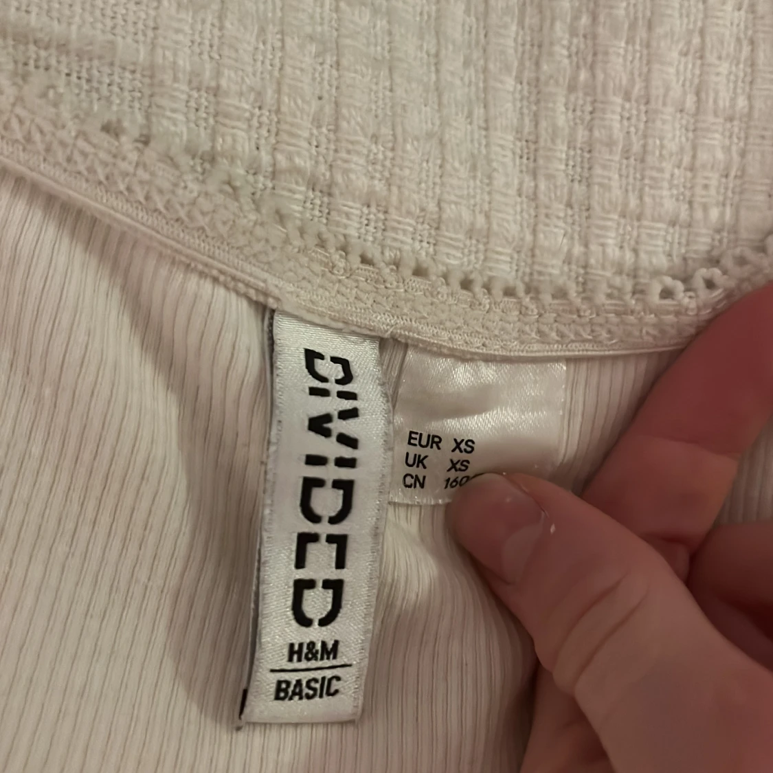 Säljer en söt vit ribbad topp från H&M Divided. Toppen har korta ärmar och en fin spetsdetalj vid halsringningen. Perfekt för en avslappnad stil.