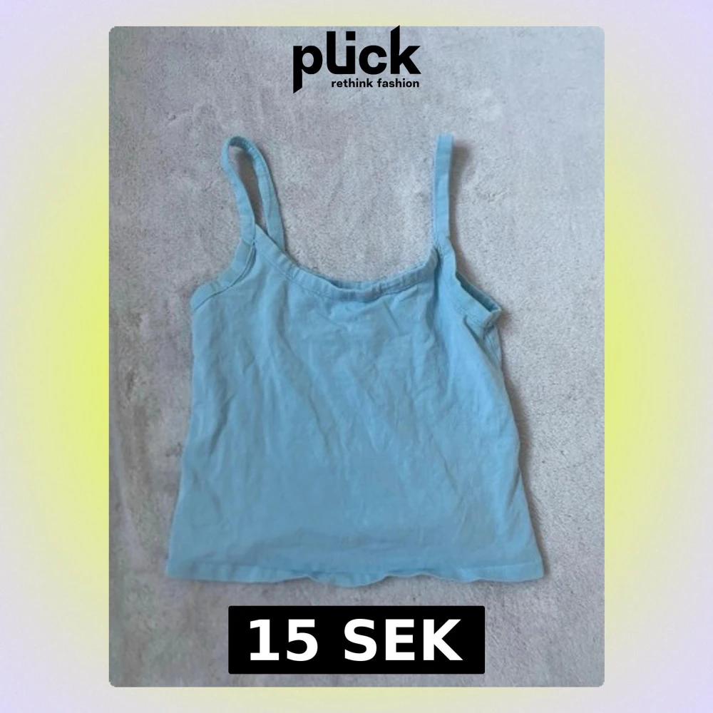 Söt ljusblå linnetopp från H&M Divided med smala axelband och enkel design. Perfekt att matcha med jeans eller kjol för en avslappnad look. Tillverkad i mjuk bomull som känns skön mot huden.I storlek S men upplevs mer som xs/xxs
