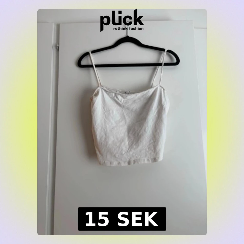 Säljer en enkel och stilren vit croppad linnetopp med tunna axelband. Perfekt att matcha med jeans eller kjol för en fräsch look. Toppen har en rak passform och är ärmlös.