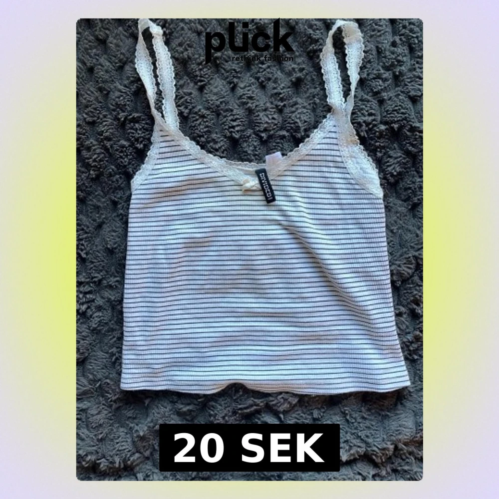 Söt vit och svart randig linnetopp från Divided med spetsdetaljer vid axelband och urringning. Toppen har en liten rosett framtill och är croppad med smala axelband. Perfekt för en avslappnad och trendig look.