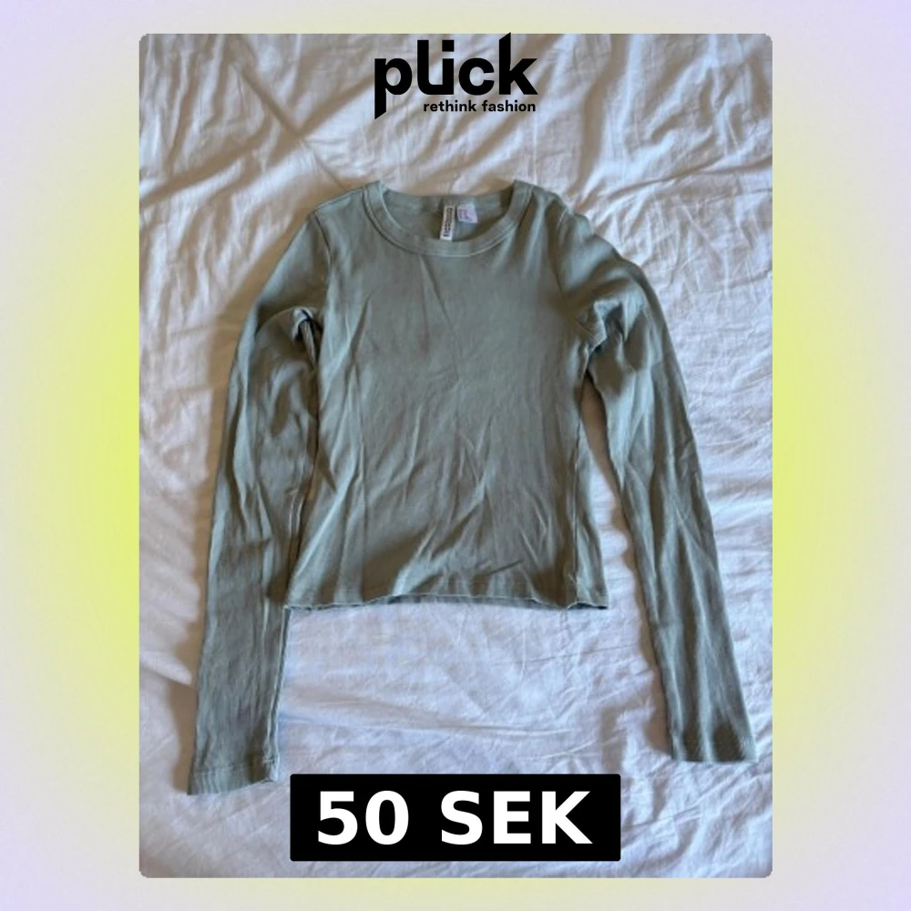 Säljer en ljusgrön långärmad topp. Toppen är ribbad och har en rund halsringning. Perfekt att matcha med jeans eller kjol för en enkel och snygg look.