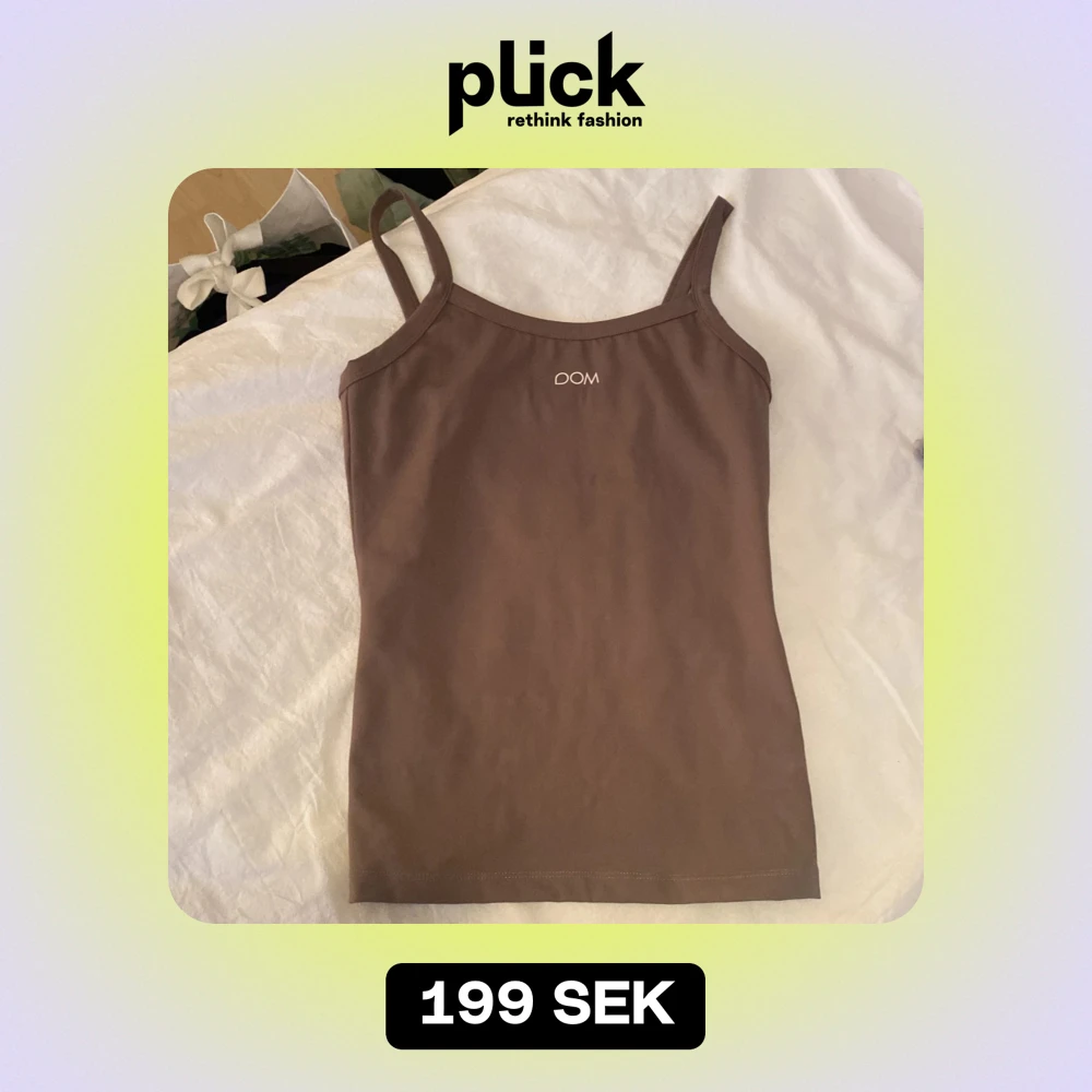 Säljer en snygg brun linnetopp från DOM. Den är ärmlös med smala axelband och har en enkel design som passar perfekt till sommaren. Toppen är i bra skick och är superbekväm att ha på sig!