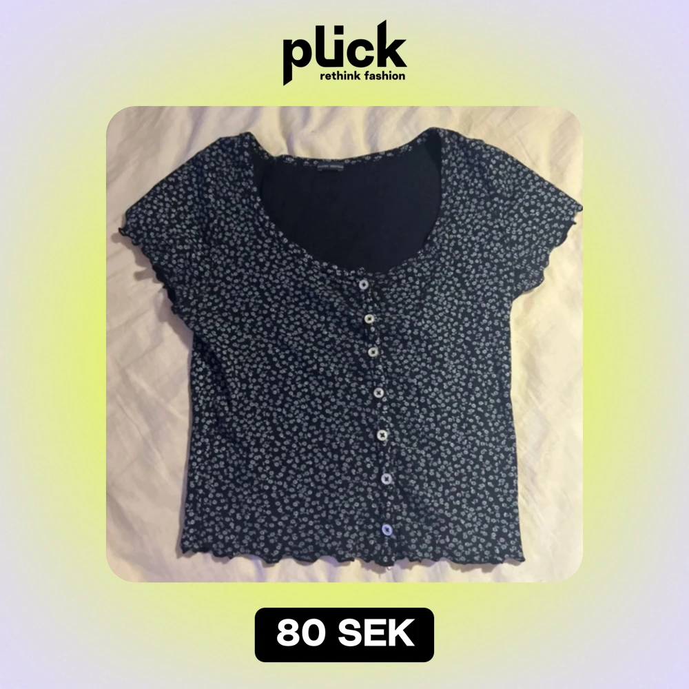 Söt svart topp med vita blommor och knappar framtill från Brandy Melville.