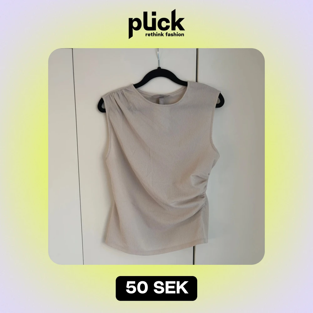En beige draperad topp från hm i storlek s. Helt ny med prislapp. Strechig i materialet.