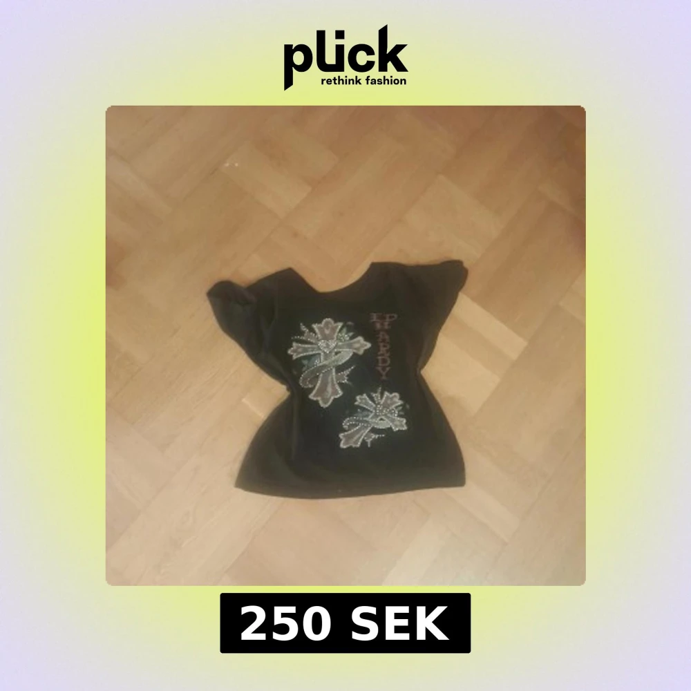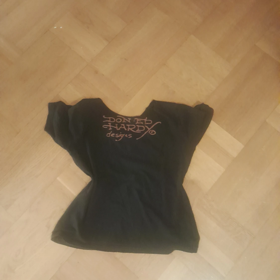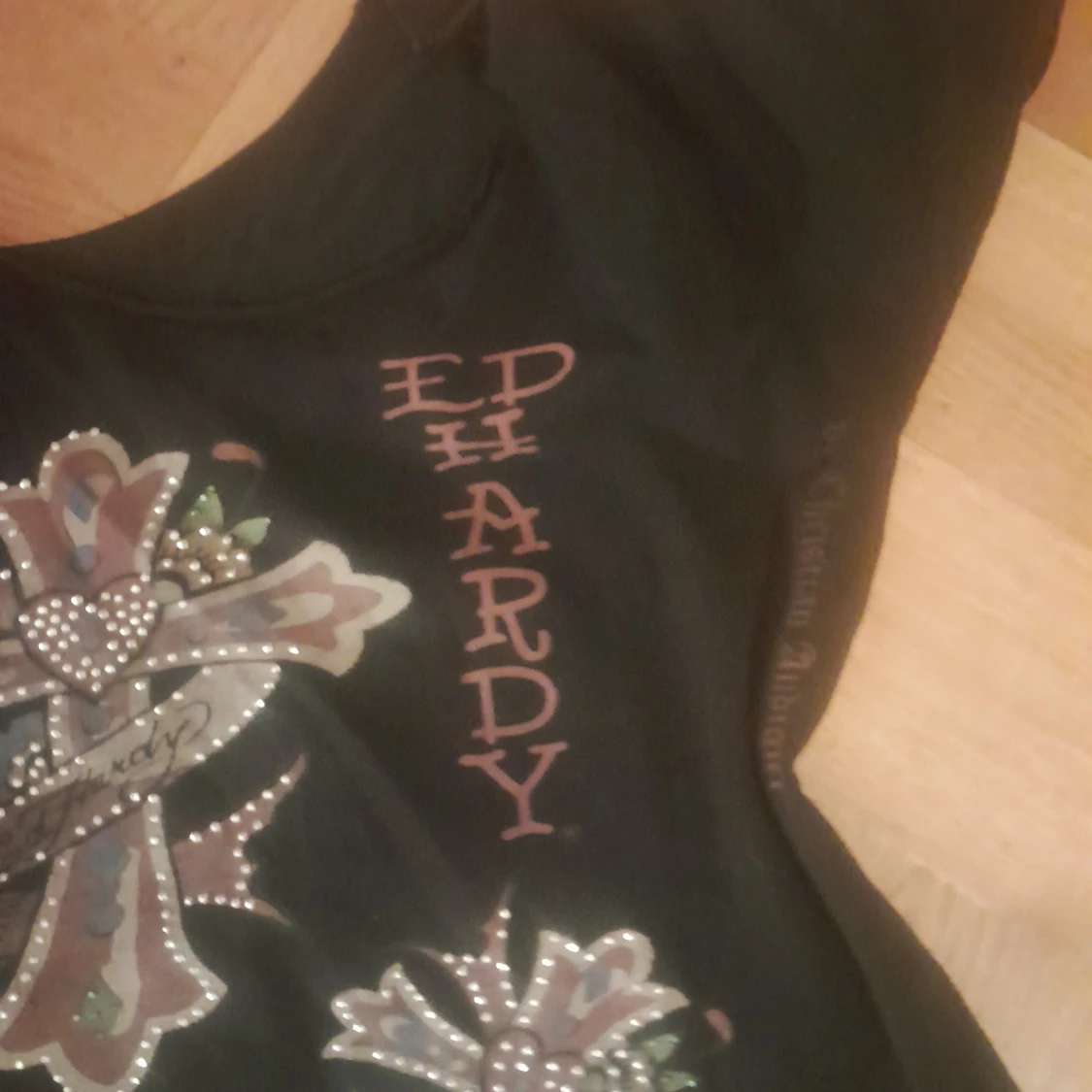 Cool svart topp från Ed Hardy med stora korsmotiv framtill, dekorerade med glittriga nitar och färgade detaljer. Toppen har korta ärmar och figurnära passform. Snyggt tryck med Ed Hardy-logga både fram och bak. Perfekt för dig som gillar statement-plagg. PRIS KAN DISKUTERAS