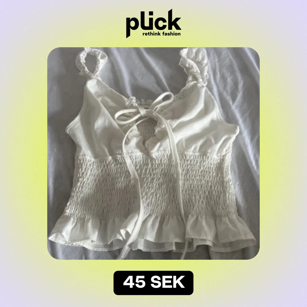 Jättefin vit topp❤️ den är skjusterbar vid bröstet och har resår vi magen så jag skulle såga att storleken är flexibel. Säljer då den tycärr inte kommer till användning❤️ har köpt den second hand så vet tyvärr inte märket❤️