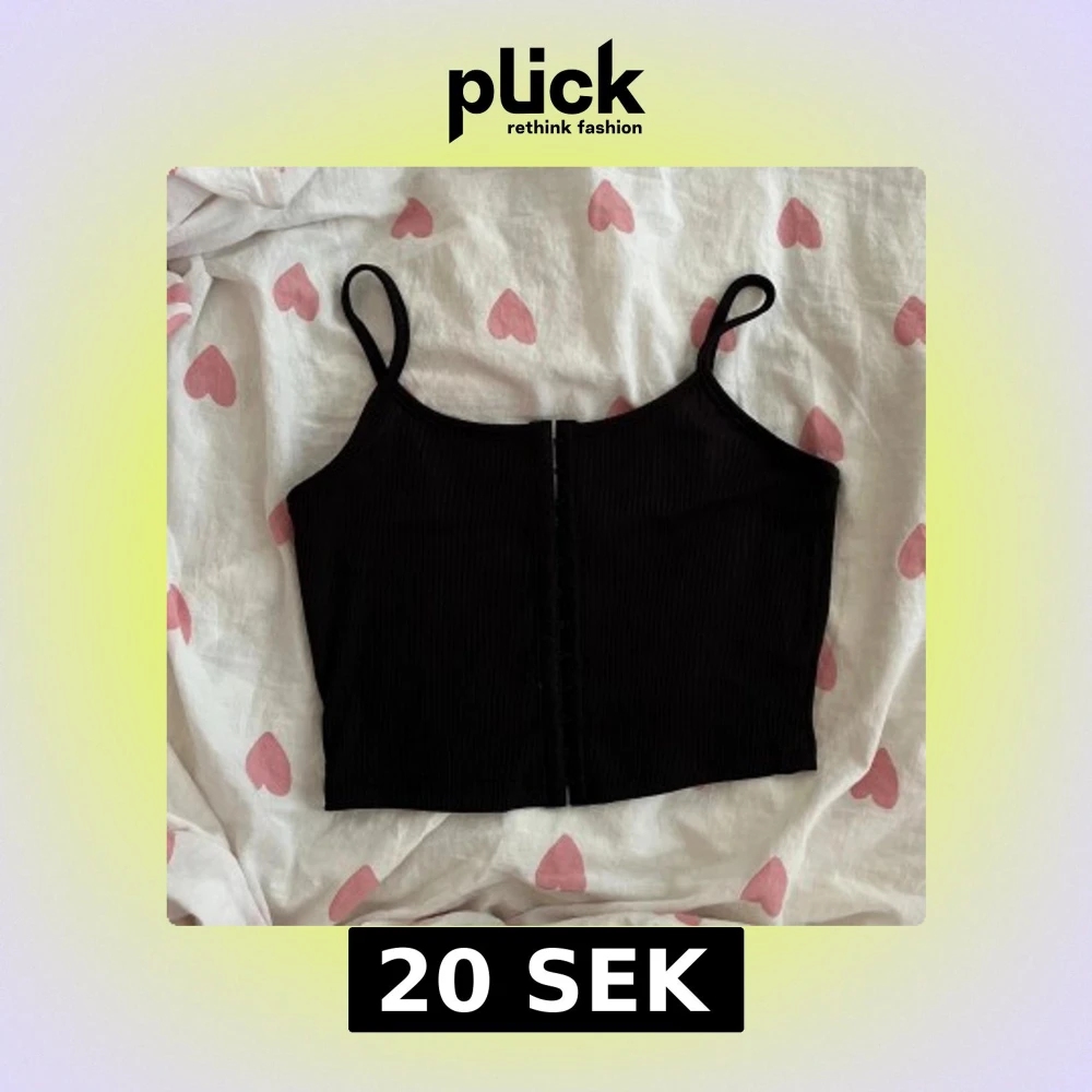 En ribbad svart croppad korsett-topp från SHEIN i strl S med smala axelband och hakknäppning framtill!💞