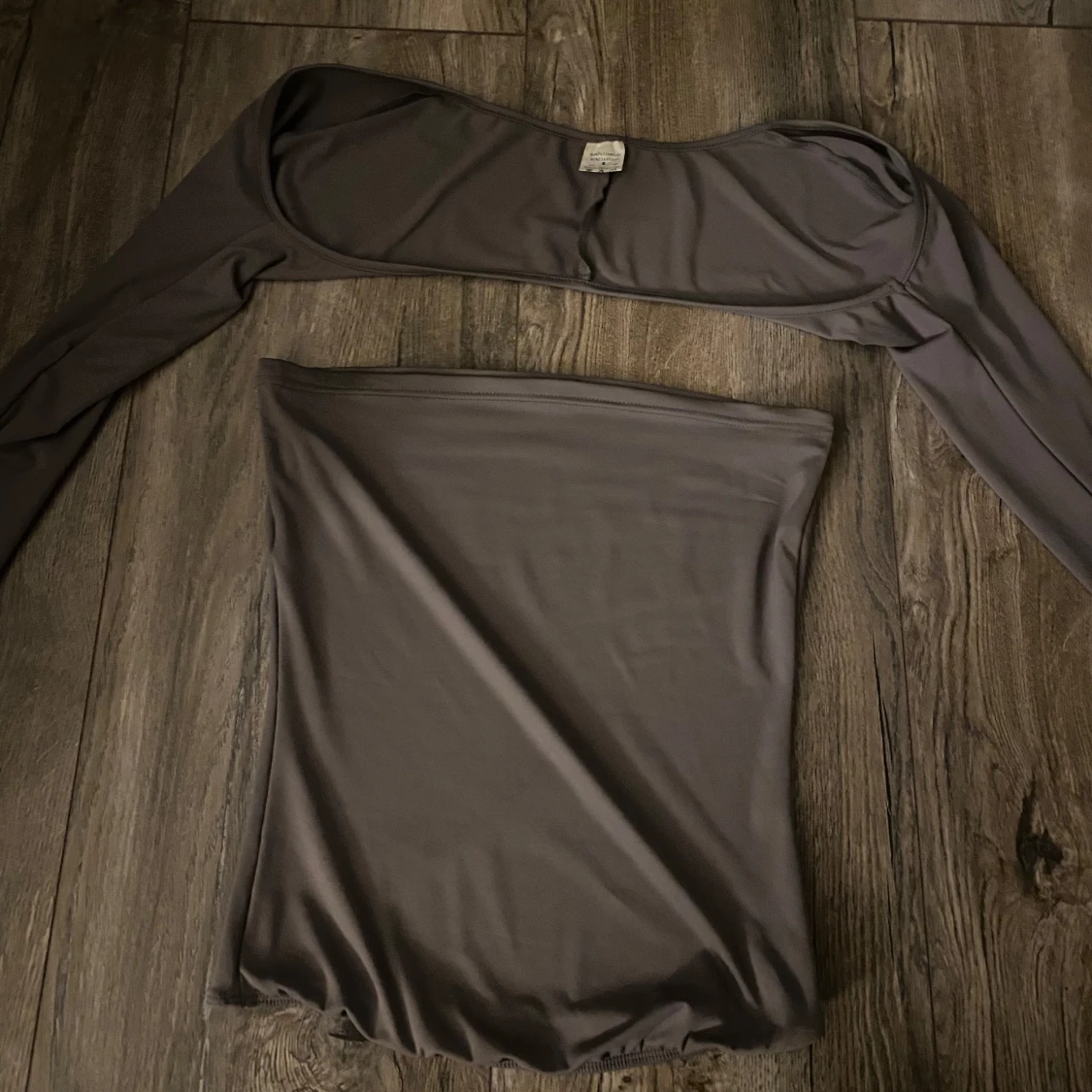 Säljer en skit finnn grå offshoulder topp i två delar. Väldigt stretchig och bekväm. Pris kan diskuteras och skriv för frågor🥰