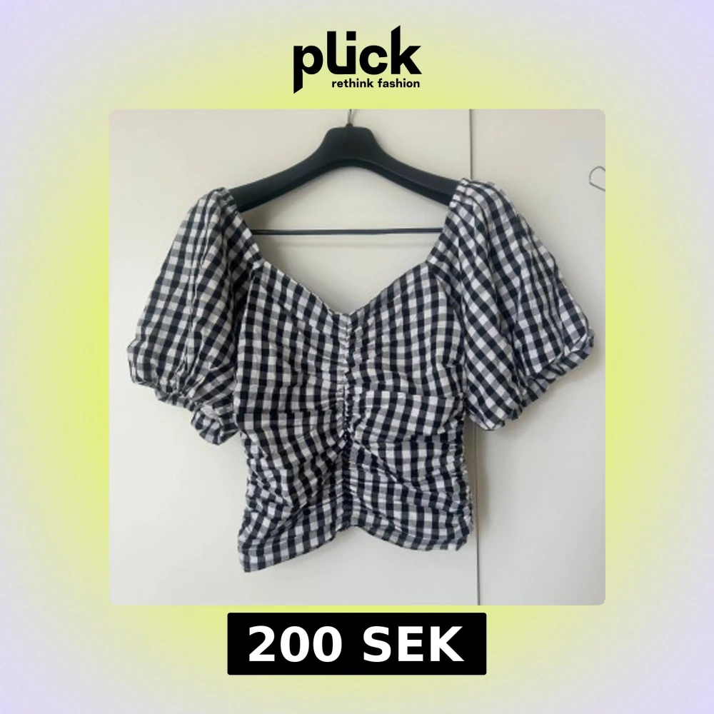 Svartvit rutig blus med puffärmar