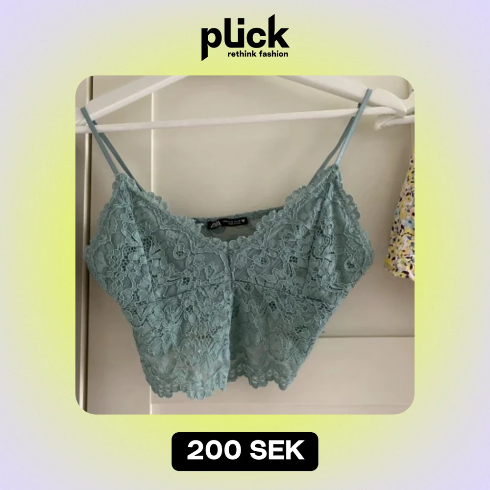 En spetsig topp som passar perfekt till fest eller finare tillställningar. Toppen är croppd i en blå-grön färg. Toppen kommer från Zara och är i storlek M.