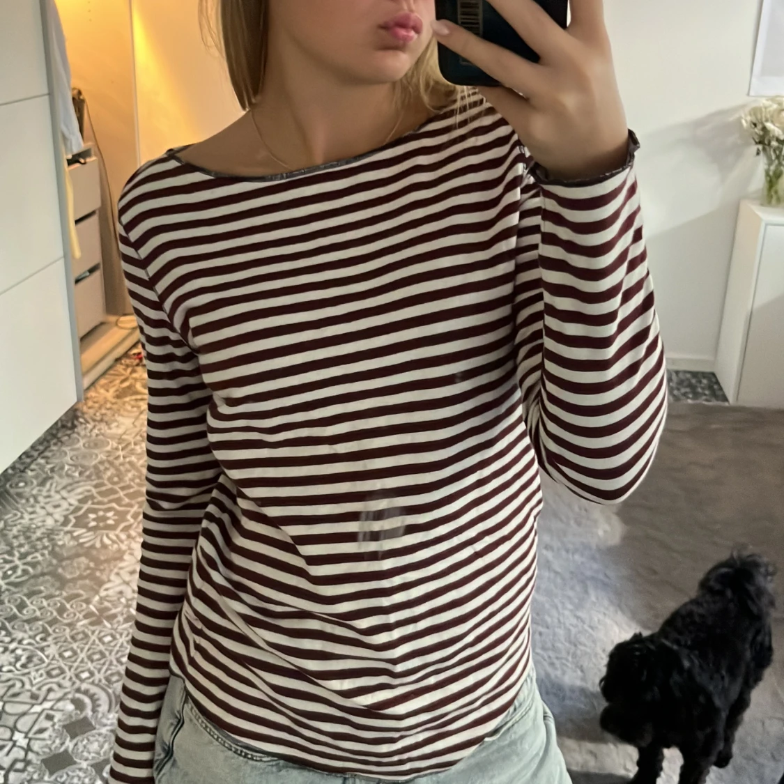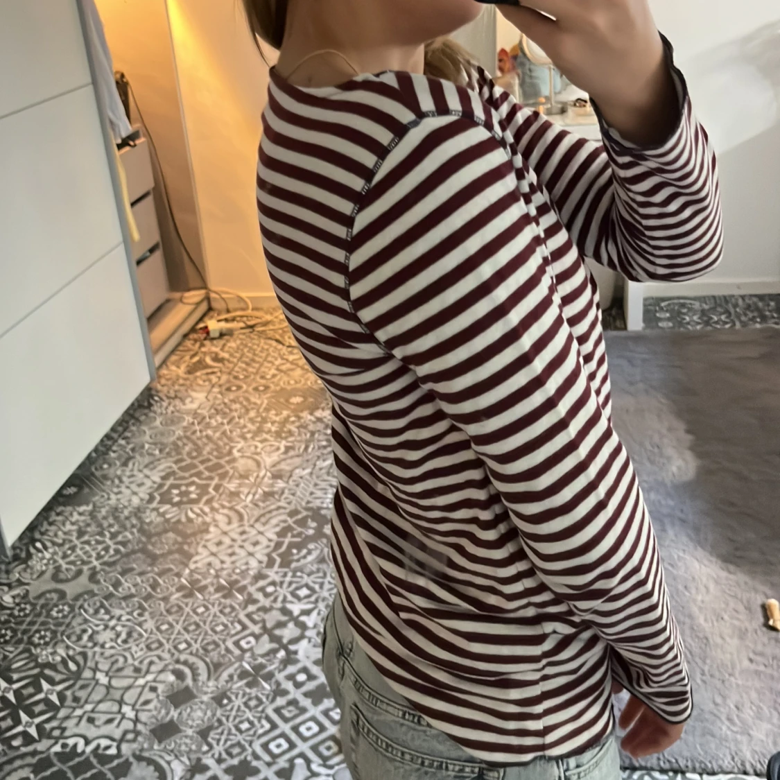vinröd vit randig tröja. jätte fin och skön