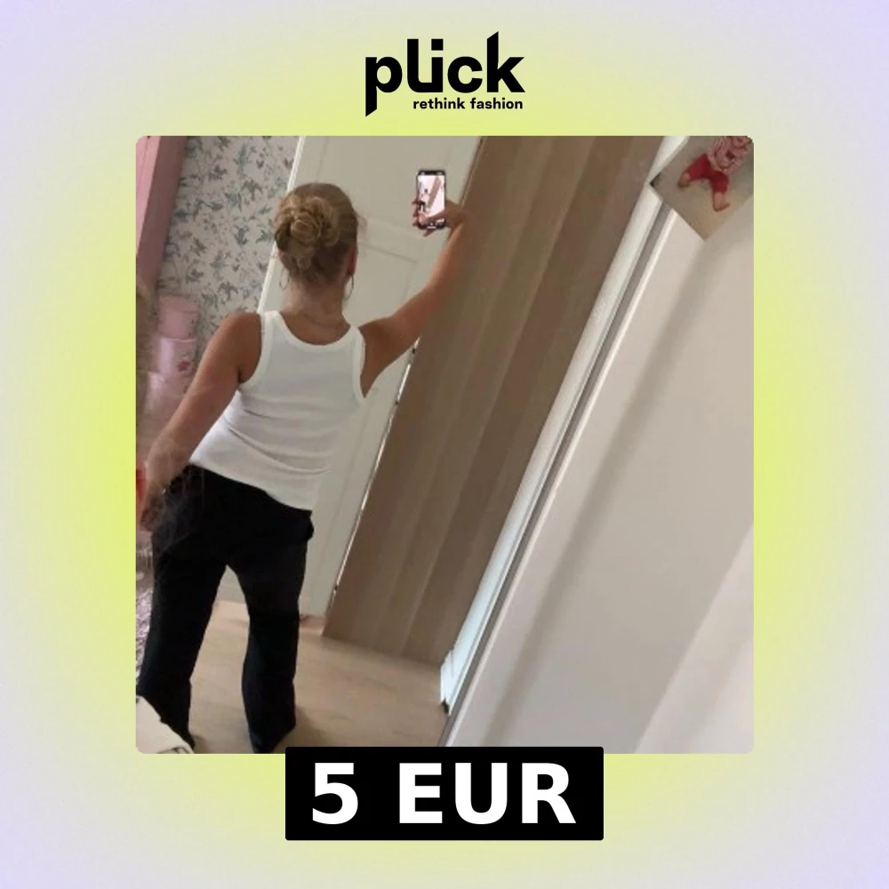 Säljer en klassisk vit ribbad linnetopp med rund halsringning och ärmlös design. Perfekt för varma dagar eller som lager under skjortor.