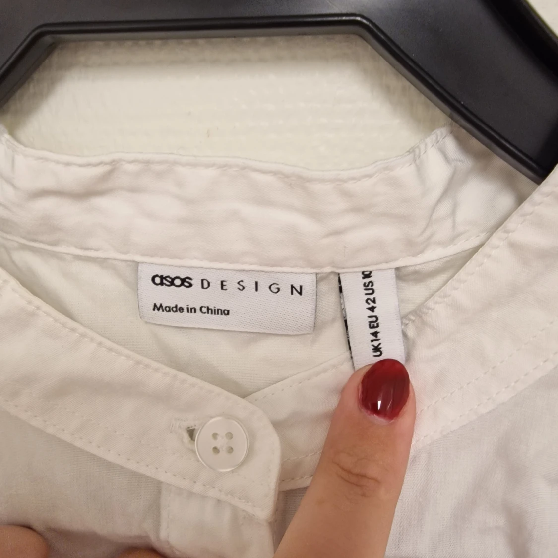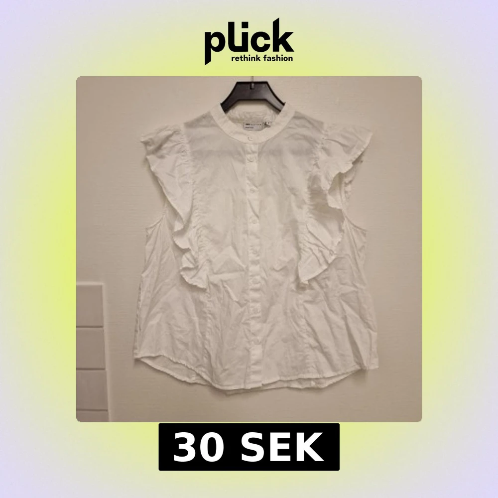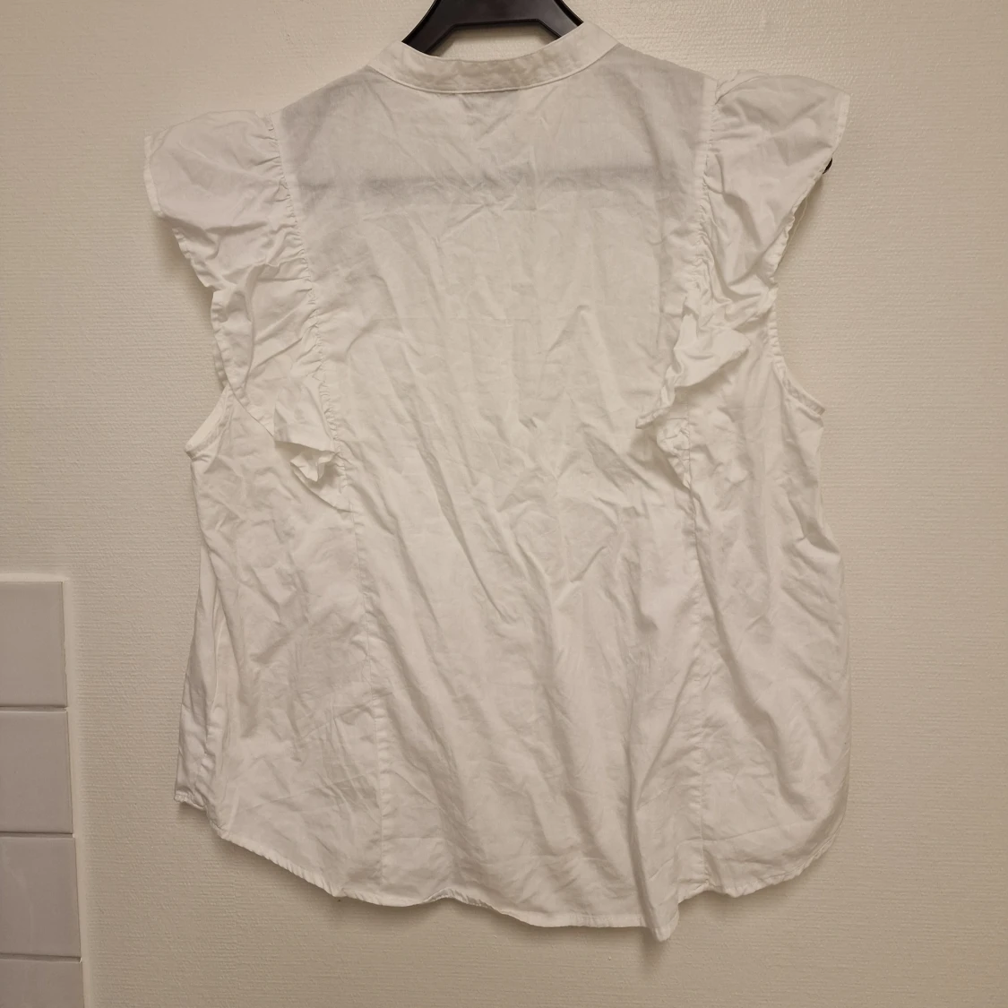 Säljer en vit blus från ASOS DESIGN i bomull med knäppning framtill och volangdetaljer längs ärmhålen. Blusen är ärmlös och har en rak, lite loose passform. Perfekt för dig som gillar en söt och stilren look.