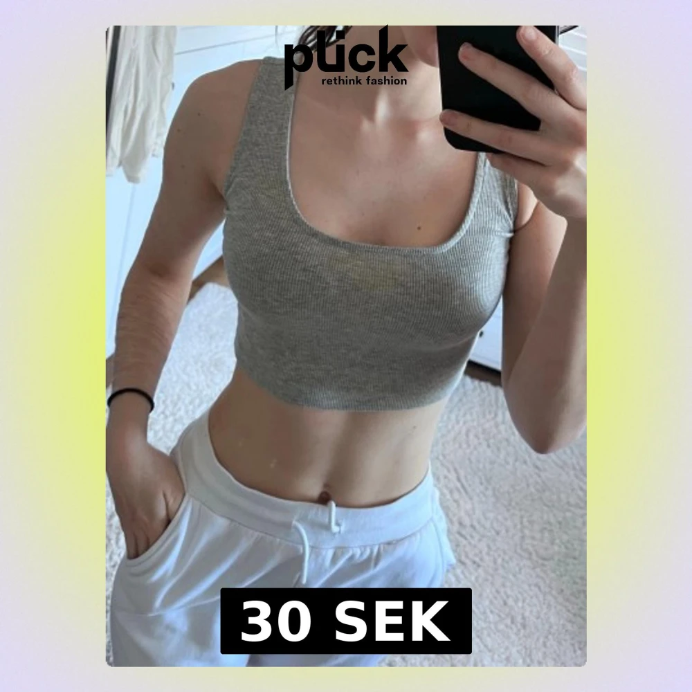 Supersnyggt grått crop topp magtröja linne ribbat från Even&Odd