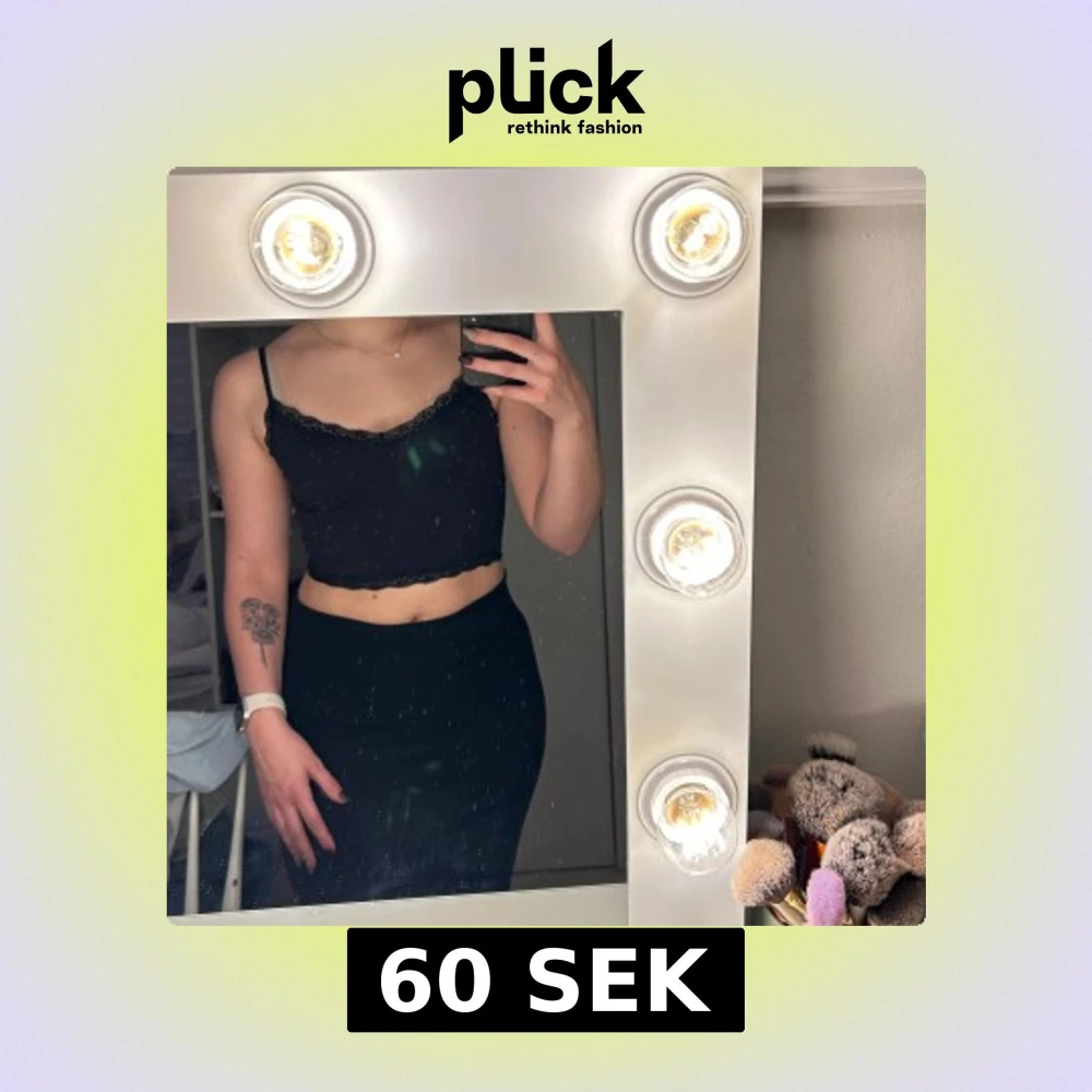 Svart croppad linnetopp från Even&Odd med tunna axelband och fina spetsdetaljer längs halsringning och nederkant. Storlek xs/sToppen är i mjukt material och har en slim passform som sitter snyggt på kroppen. Perfekt att styla med höga jeans eller kjol.