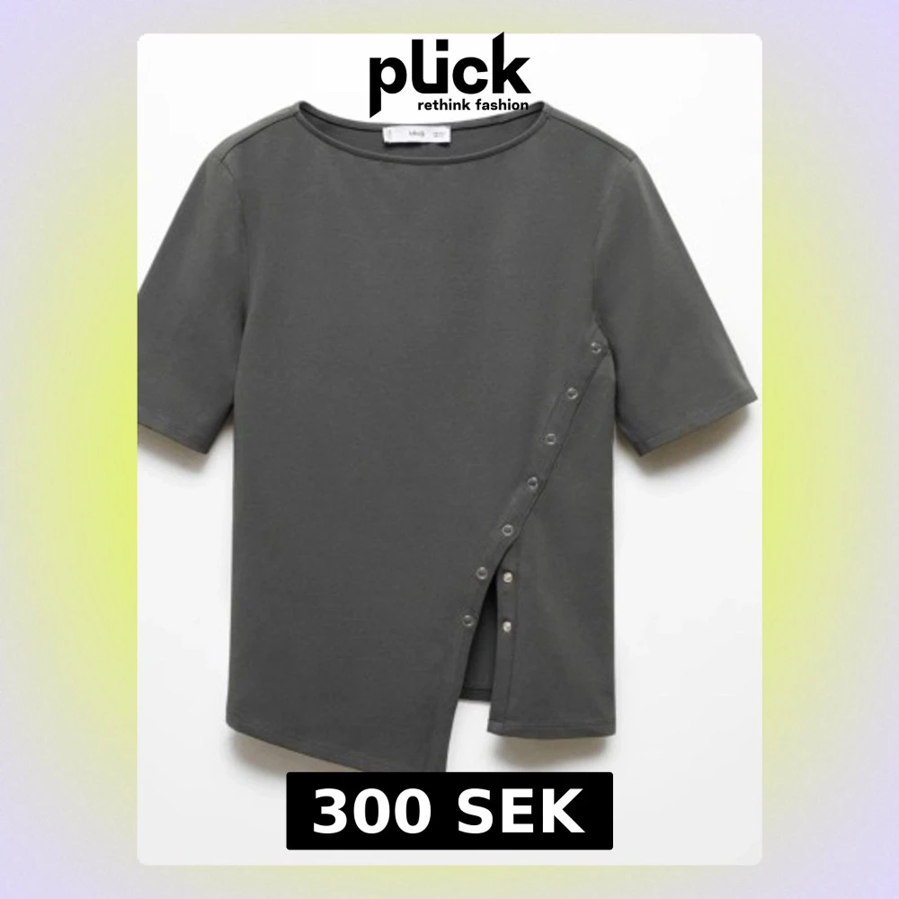 Cool svart topp från MNG med korta ärmar och rund hals. Toppen har silverfärgade tryckknappar längs sidan som ger en snygg detalj och lite öppen effekt vid midjan. Materialet är mjukt och känns skönt mot huden.