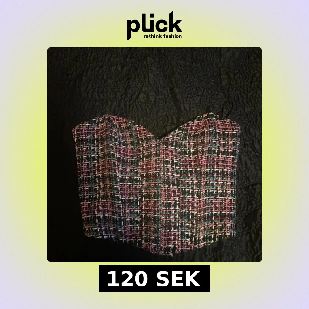 Säljer en snygg korsett-topp från Zara i storlek S. Toppen har ett rutigt mönster i rosa, vitt, svart och grönt med struktur och en croppad passform. Perfekt för att lyfta vilken outfit som helst!