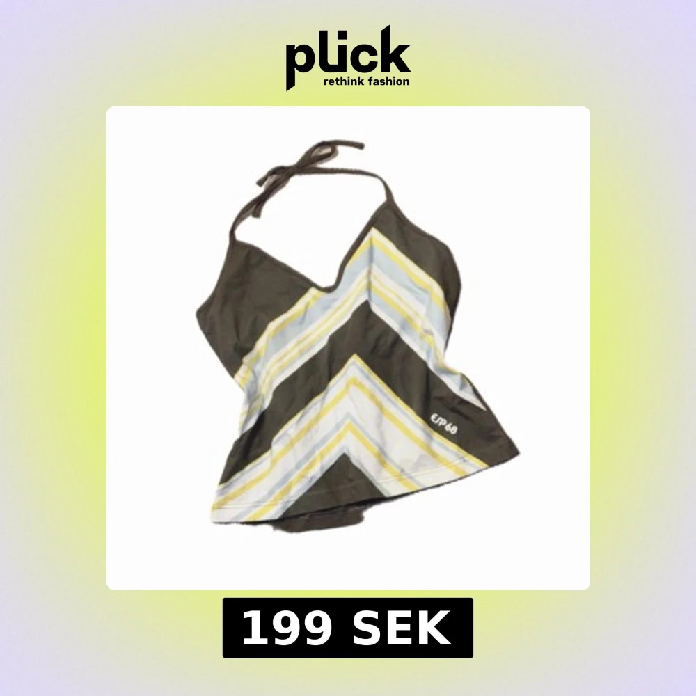 Säljer en snygg brun och vit halterneck topp från Esprit med ett coolt zickzackmönster i gult och vitt. äkta från 2000-talet, Toppen har en knytning i nacken för justerbar passform.