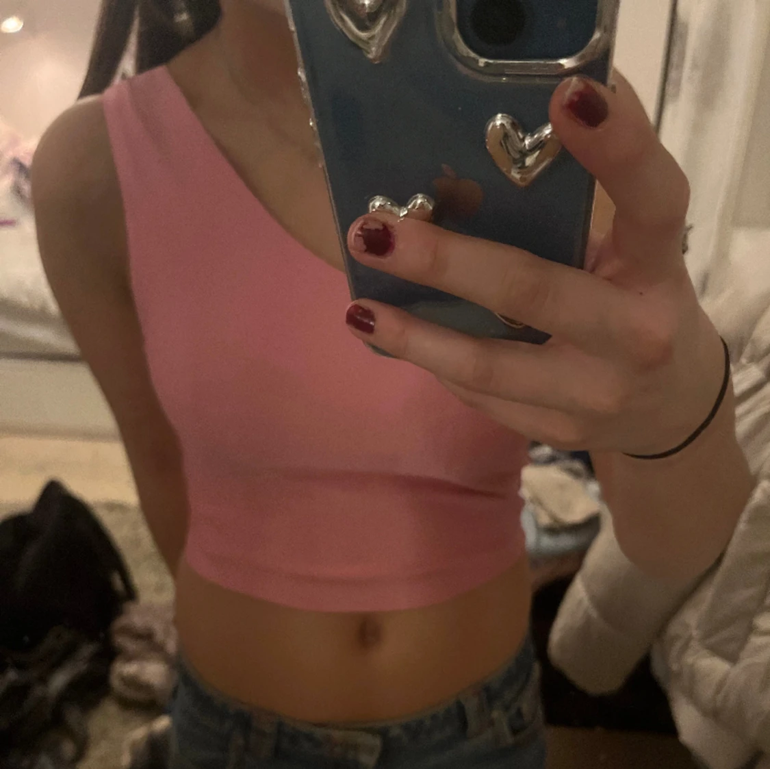 Väldigt söt rosa one-shoulder topp som är sååå snygg! Knappt använd som ny🥰🌟💞