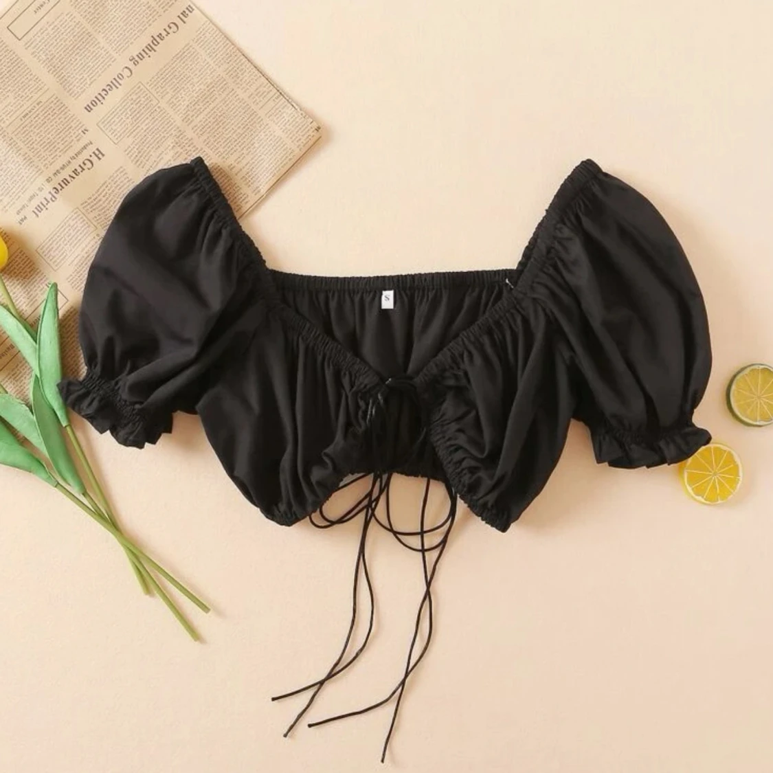 Super söt topp, man kan välja att knyta den på olika sätt. Storlek M, kommer tyvärr inte till någon användning mer!☺️