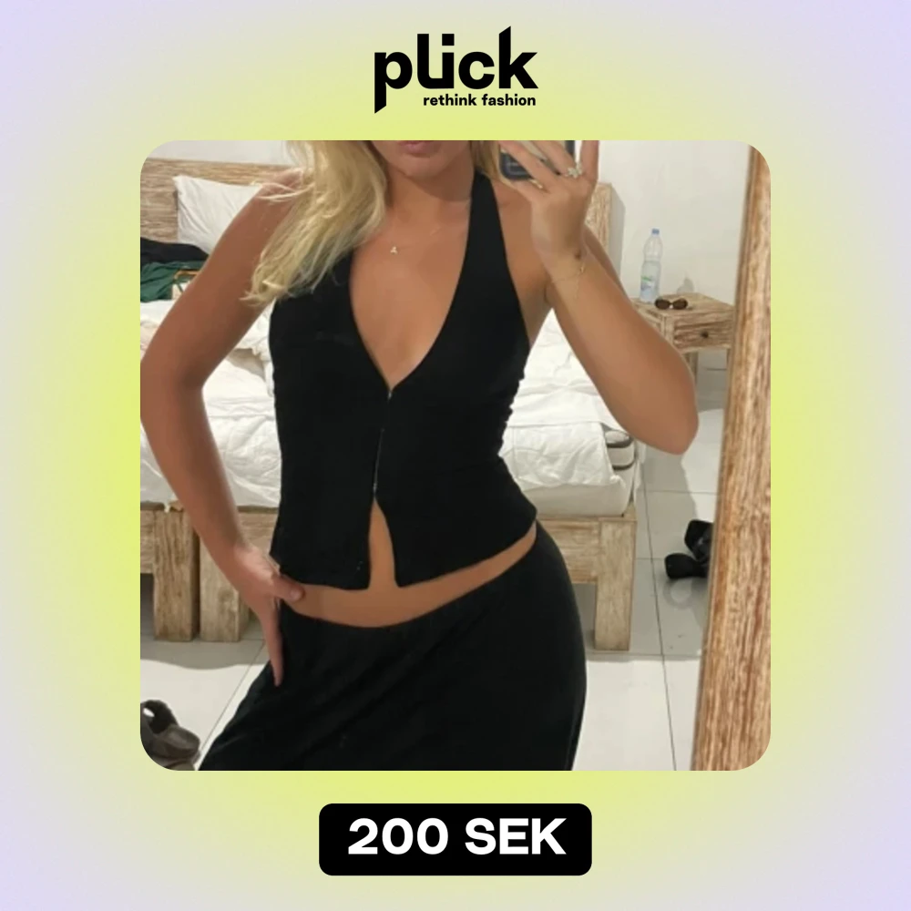 Svart topp i linne tyg som man knäpper framtill och öppen i ryggen. Köpt i Australien 💕