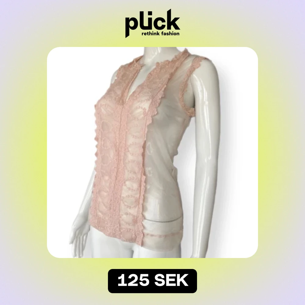 En genomskinligt linne med spets detaljer. Väldigt feminin och coquette! Står varken storlek eller märke. Tror passformen passar Small. Dockan använder X-Small. MÅTT: Axel till axel ~33cm, armhåla till armhåla 40cm, midjebredd ~35cm & längd ~61cm
