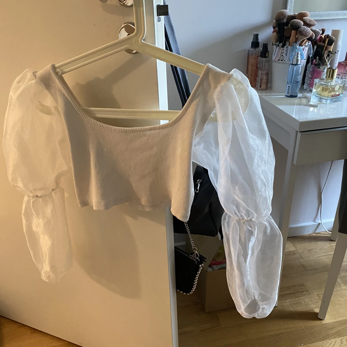 Vit kort topp me genomskinliga armar