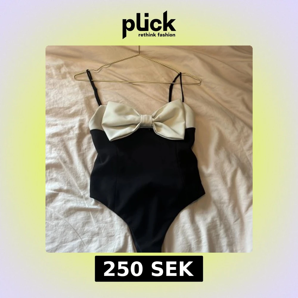Jättesnygg svart body med vit rosett