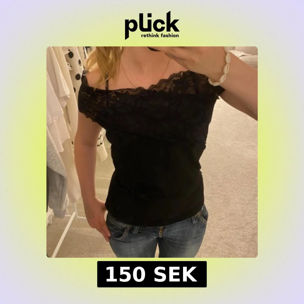 Säljer en svart offshoulder topp med spets! Den är i storlek M! Skriv om ni funderar något!