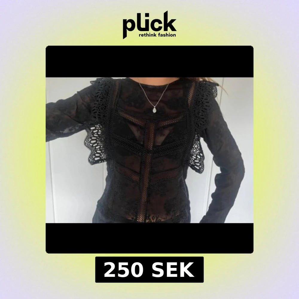Supersnygg svart blus i transparent spets med dekorativa volangdetaljer på axlarna och fina broderade partier framtill. Långärmad och figurnära passform❤️💗