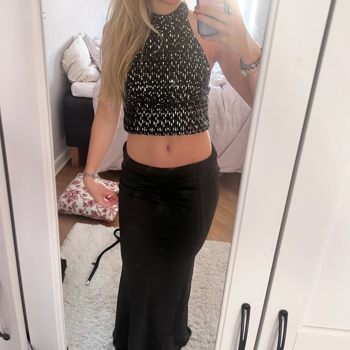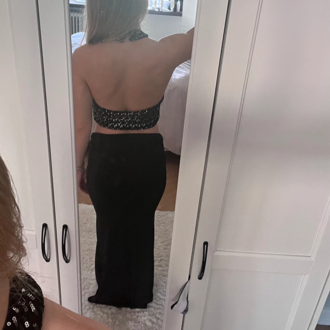 En jättefint glittrig festtopp med öppen rygg. Använd endast en gång.