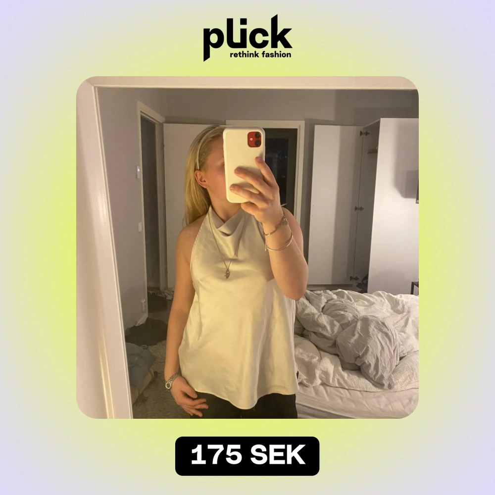 Fin krämvit festtopp med halterneck och knyte i bak.