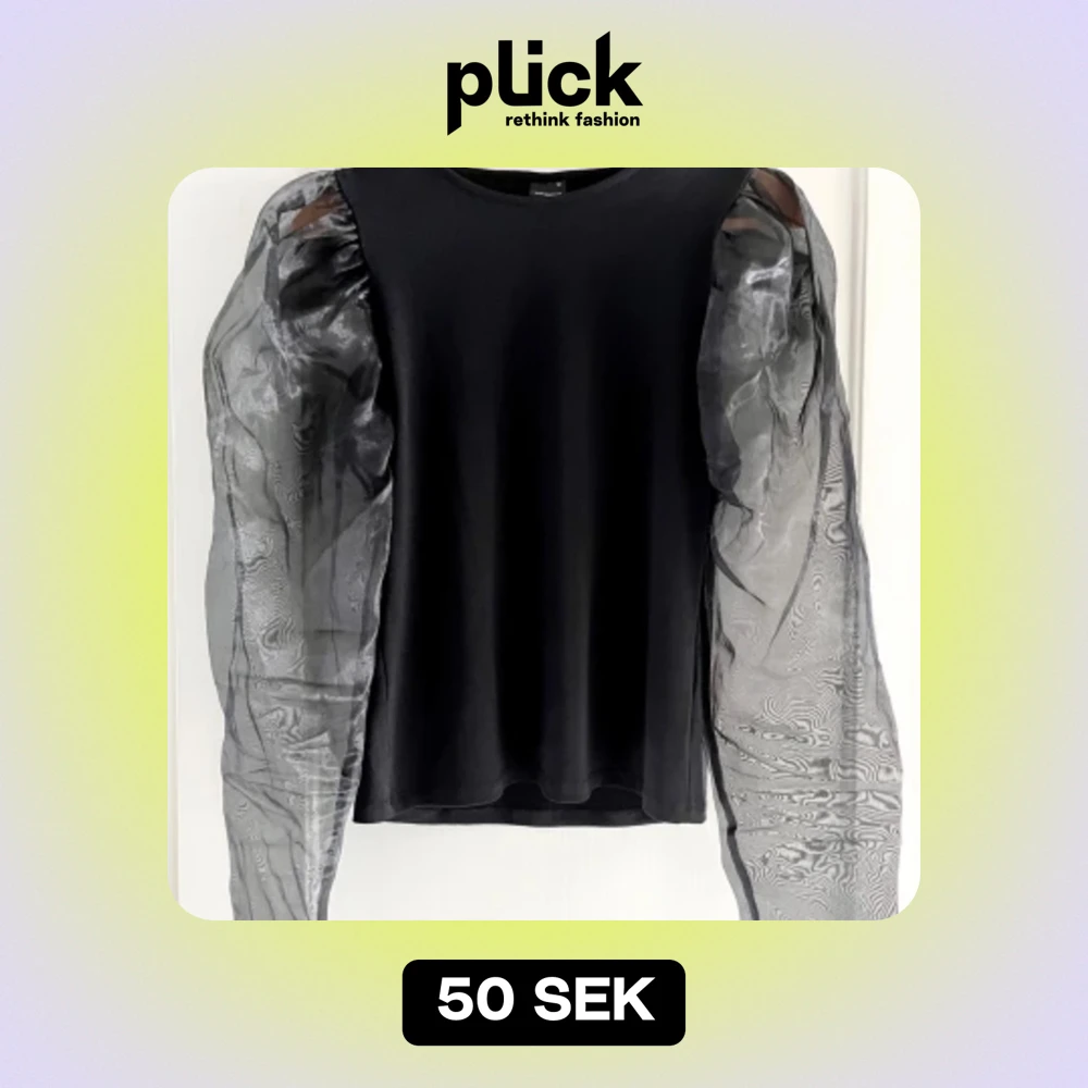 Festlig topp från Gina Tricot i storlek M. Mesh-ärmar med puffaxlar och otroligt bekvämt material på resten av tröjan. Något stretchigt och lätt på kroppen. Fint skick!