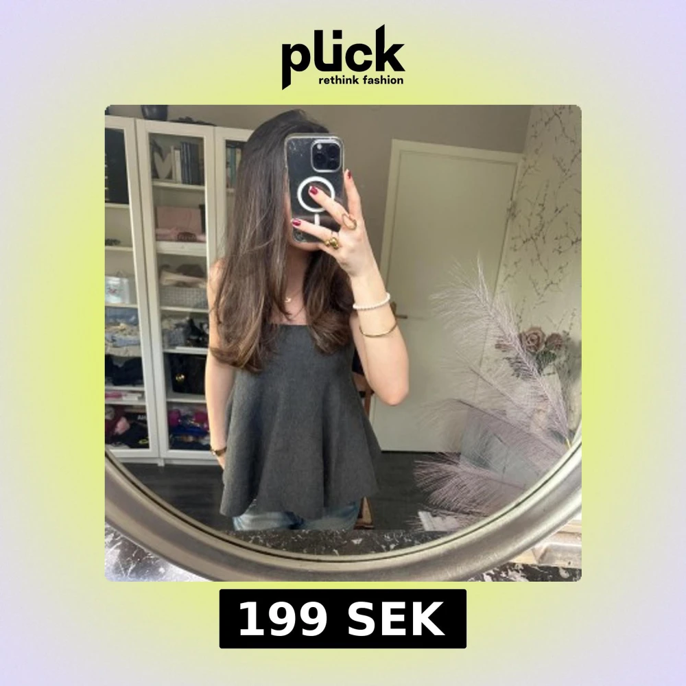 Säljer en mörkgrå ärmlös topp med vidd nertill. Toppen har en enkel och stilren design med rundad halsringning och lätt utställd passform. Perfekt till att ha på en fest eller i skolan💕